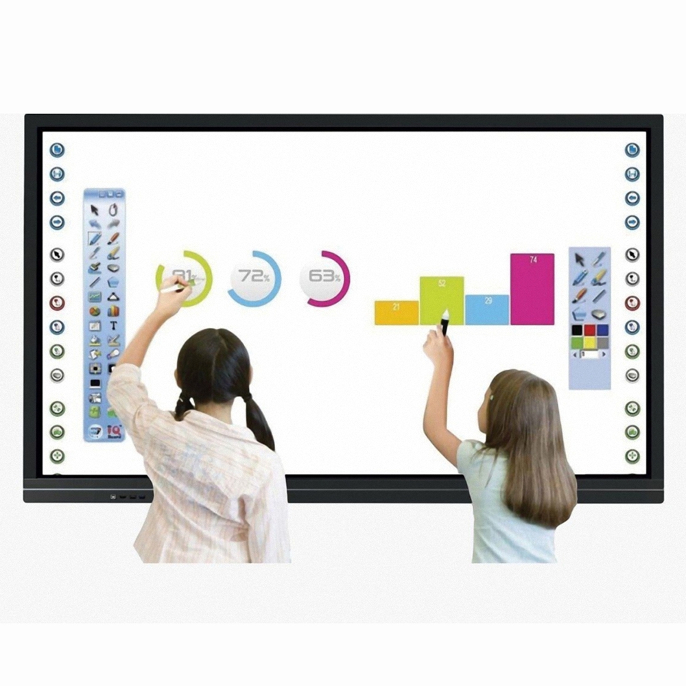 Интерактивная панель 86” оснащена экраном с разрешением 3840*2160 пикселей (4К), обеспечивающим высококачественное изображение. Технология Infrared Touch распознает до 32 точек касания пальцем, ладонью или стилусом. Графическими элементами на экране могут управлять до 20 учащихся одновременно. На интерактивной панели можно запускать любые приложения, презентации, ролики, создавать рисунки и писать тексты, а так же изучать необходимые для учебы сайты, подключившись к сети интернет.