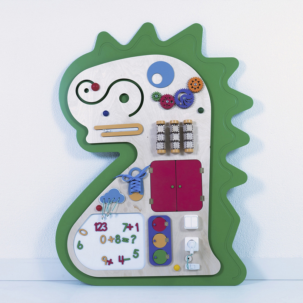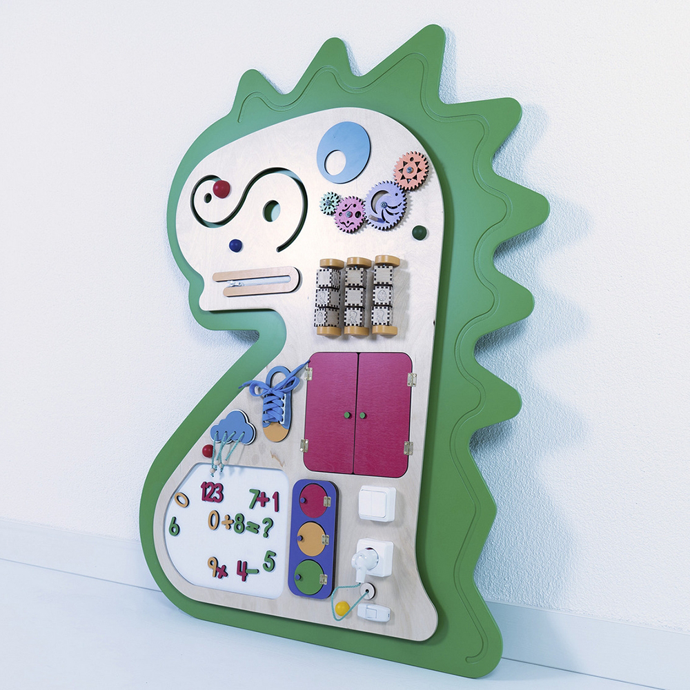 Развивающий сенсорный Бизиборд «Крамп» украсит стену любого образовательного учреждения. Необычный внешний вид непременно привлечет внимание детей, а встроенные развивающие элементы займут их на долгое время.