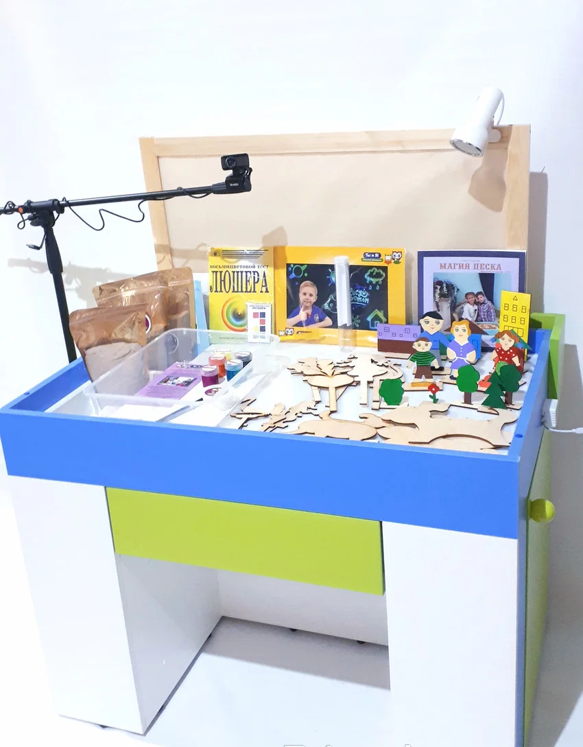 Включает в себя наборы для песочной анимации, рисования на воде и набор для театра теней.