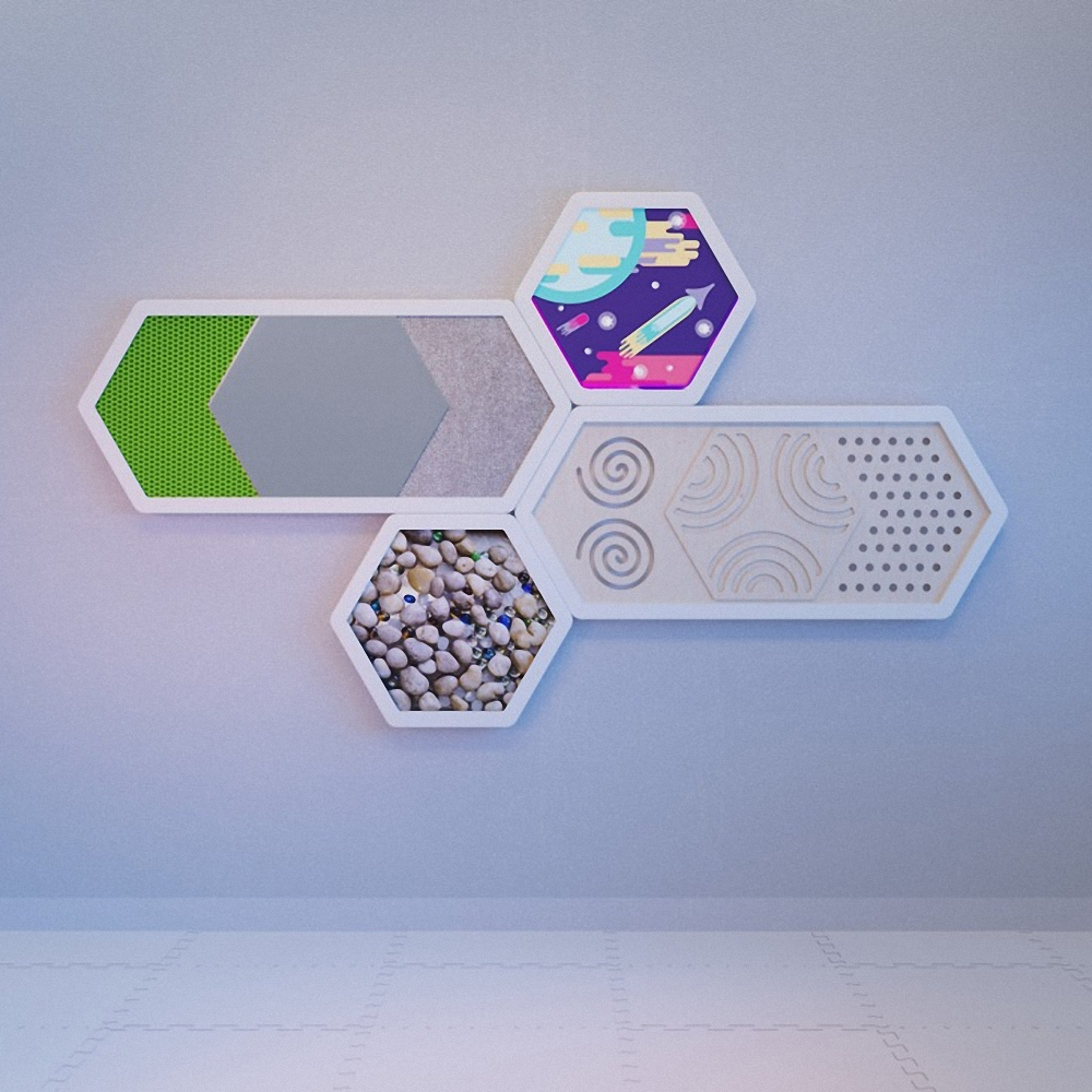 Это декоративные настенные модули, покрытые различными материалами и рельефами, для развития сенсорных систем малышей: зрения, осязания, слуха.
