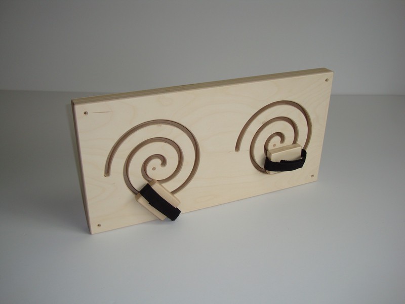 Ребенок надевает крепления либо на руки, либо на ноги, и проводит рукой или ногой от начала до конца лабиринта.